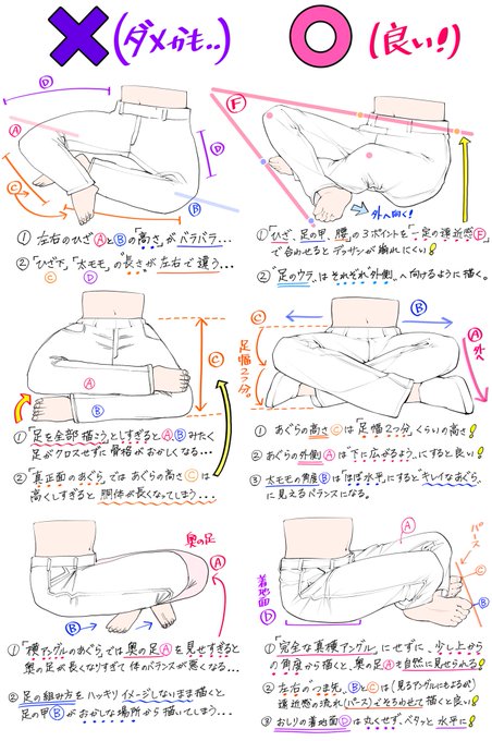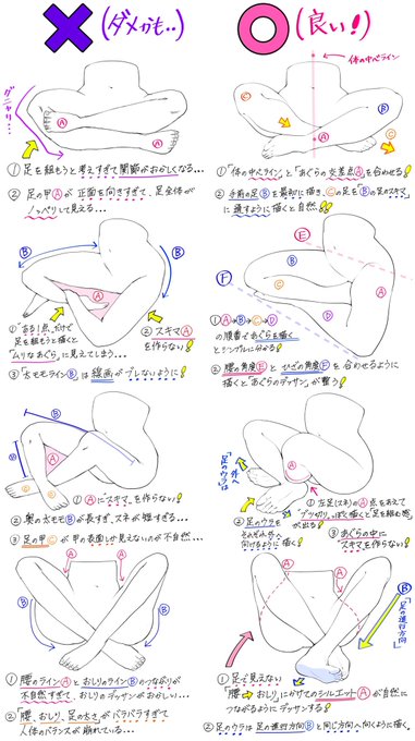プロによる 素肌とジーパンタイプのあぐらの描き方 と いろんな