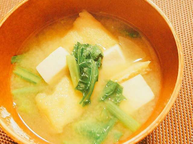 かぶの葉と油揚げと豆腐の味噌汁 レシピ 作り方 By こ あ ママ