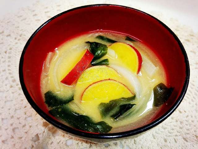 さつまいも わかめ 玉ねぎの味噌汁 レシピ 作り方 By Rママ ๑