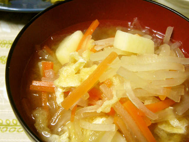 根菜さん集合 じゃがいもと人参と玉ねぎの味噌汁 レシピ 作り方 By