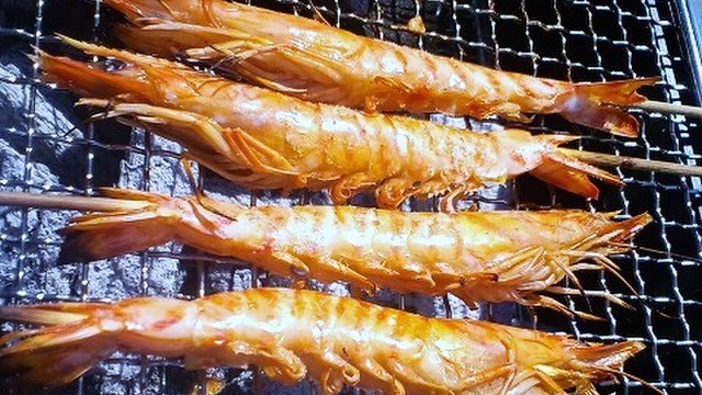 殻ごとガブリ まるごとエビの炭火焼き 築地魚河岸手ぶらbbq広場
