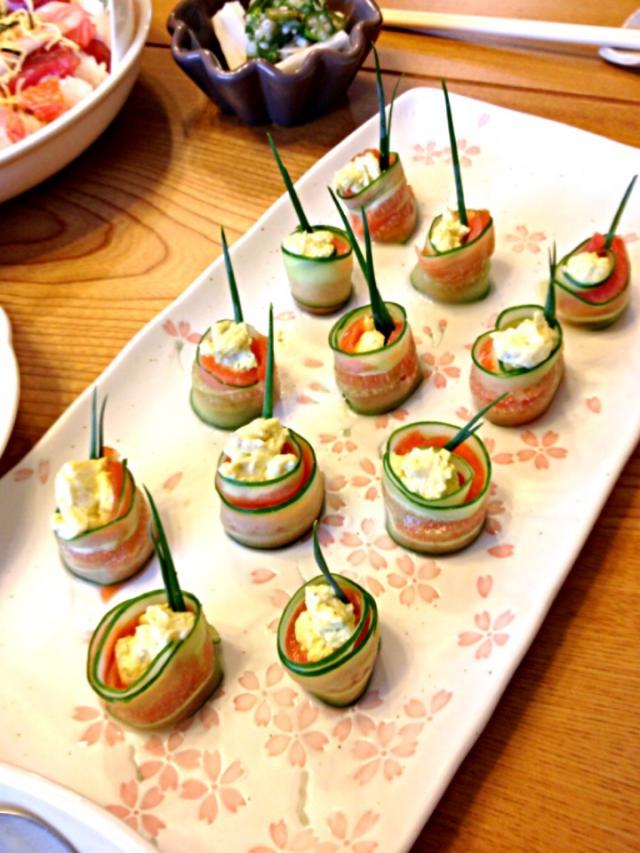 サーモンときゅうりのクルクルカルパッチョ レシピ 作り方 By Orancio