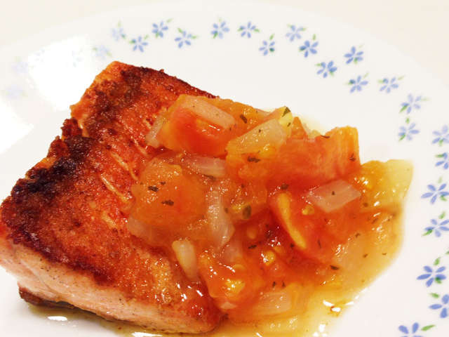 トマトソースのサーモンソテー Olive Oil Life オリーブオイルライフ