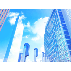 綺麗な空と街のビル 近代的なビルや町並み 無料背景イラスト7161