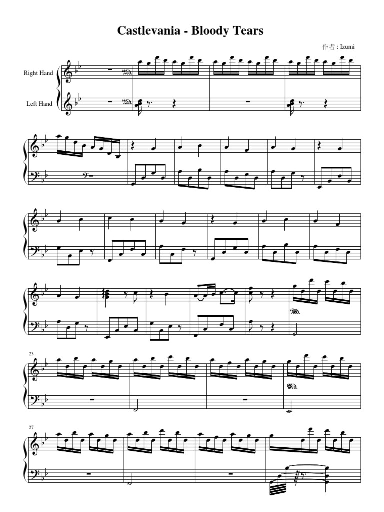 Bloody Tears Castlevania Piano Version Sheet Music Bloody